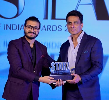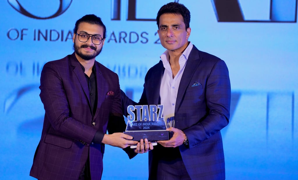 FOUNDER OF AURORA WOVS HE GOT THE BEST DANCE CHOREOGRAPHY AWARD FROM BOLLYWOOD STAR SONU SOOD